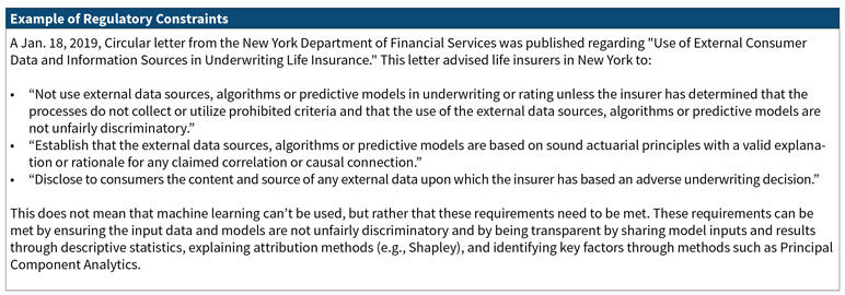 • Should the machine learning model be used in parallel to traditional underwriting? Perhaps the machine learning model can be an input to traditional experience rating or to support concession decisions only.